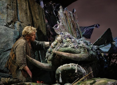 In a cavern in deep wilderness, Mime the dwarven smith is forging a sword. He is frustrated: no matter how good a sword he forges, his young "ward" Siegfried breaks every one of them. There is only one sword Siegfried could not break: Nothung the enchanted. But Mime cannot forge it anew. In his monologue we learn that he wants Siegfried to slay Fafner (who is now a dragon) so he could get the Ring.