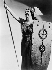 Just then, bathed in blue light, a woman appears and tells Wotan to surrender the Ring and thus evade its dread curse. She introduces herself as Erda the Earthmother and tells the gods she has seen a dark day dawn for the gods: the End of Everything. Then she disappears. Reluctantly, Wotan follows this piece of advice and gives the Ring to the giants.
